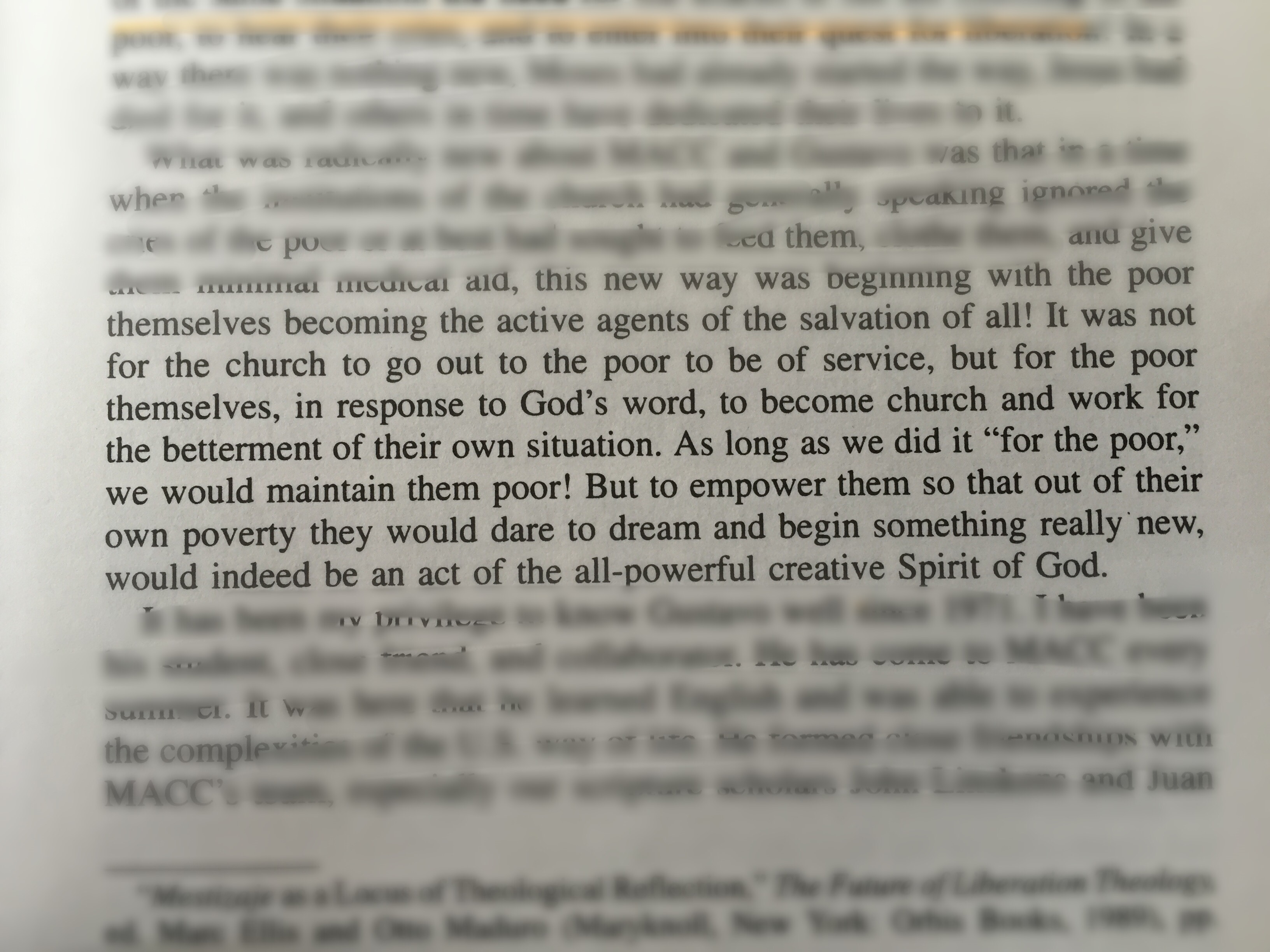 We don’t need to do it “for” the poor. Or even worse “to” the poor. Those are the wrong prepositions. We need to do our work with the poor.